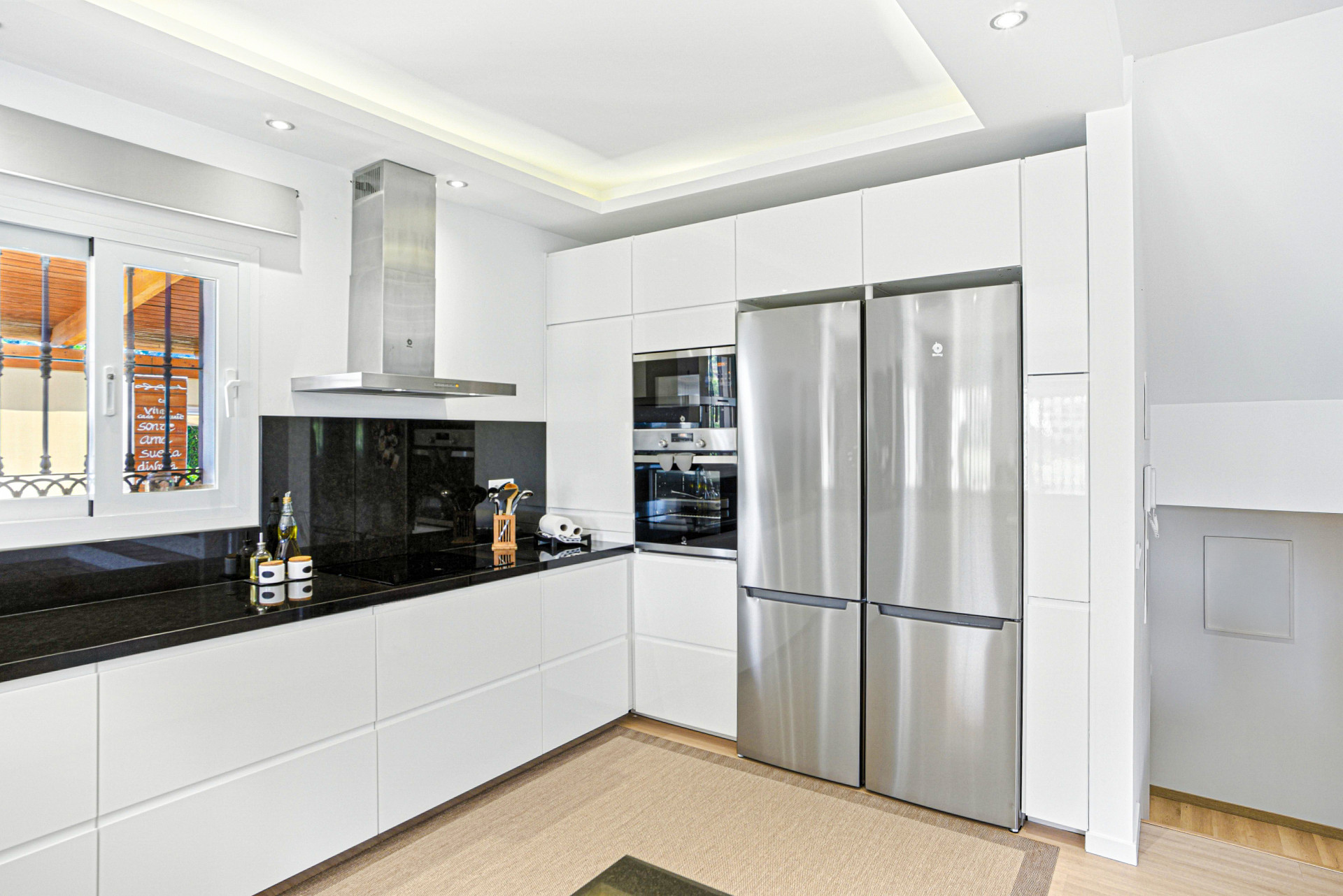 Fantastic villa with golf views in the prestigious area of Valle Romano (Estepona), located near the beach, supermarkets, restaurants, and beach bars. This property enjoys a southwest orientation and offers a perfect combination of comfort, privacy, and an excellent location in a quiet and well-connected area. The house is distributed over three floors, on the main floor, there is a spacious living room with direct access to the terrace, garden, and private pool; a fully equipped kitchen; two bedrooms; and a full bathroom. The upper floor features the master bedroom with en-suite bathroom and access to a large terrace with fantastic views. The lower floor includes two additional bedrooms and one bathroom. One of the rooms is currently used as an office, and this level offers the possibility of being converted into an independent apartment. Other features include fitted wardrobes, storage room, private garage, alarm system, security cameras, and solar panels.